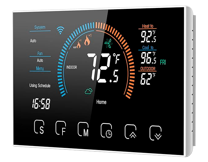 Programa la temperatura de la calefacción de tu hogar o tu espacio de trabajo desde tu celular con nuestros termostatos inteligentes digitales o Wi-Fi.